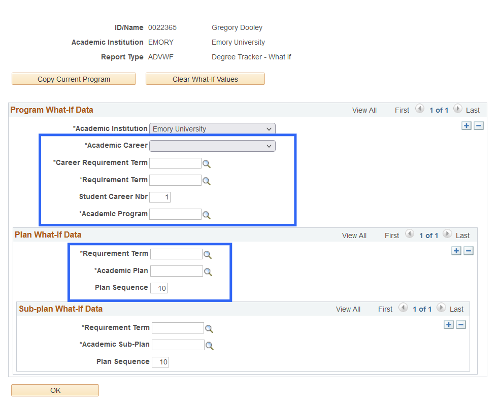 - Click Clear What-If Values to clear the current details and fill in the desired majors’ information to run a What-If report.