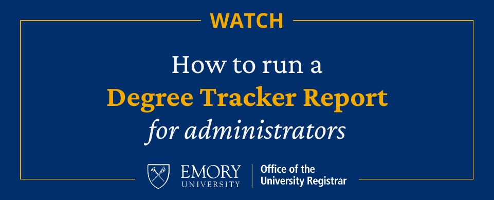 The Emory Degree Tracker is a tool within OPUS, which allows students, advisors, and administrators the ability to monitor student progress toward fulfillment of major, minor, concentration, and certificate requirements. This positions schools, users, and all involved stakeholders to realize a more successful advisement engagement and clearer pathways to on-time completion. We hope that students find Degree Tracker beneficial as they transition through their academic journey and that it promotes the effort staff and administrators put in to facilitate students’ success.